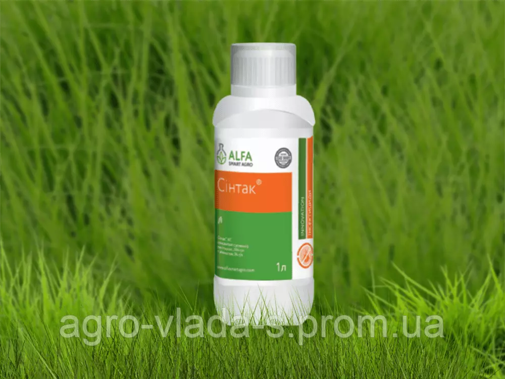 Сінтак ефективно діє на всі стадії кліщів (яйця, личинки, німфи та імаго). Надійно контролює наступні види кліщів: звичайний павутинний кліщ (Tetranychus telarius L.), червоний плодовий кліщ (Panonychus ulmi Koch.), туркестанський павутинний кліщ (Tetranychus turkestani), червоний павутинний кліщ (Tetranychus cinnabarinus), атлантичний павутинний кліщ (Tetranychus atlanticus), глодовий кліщ (Tetranuchus viennensis), червоний цитрусовий кліщ (Panonychus citri), виноградний павутинний кліщ (Eotetranychus pruni), грабовий павутинний кліщ (Eotetranychus carpini Oud.), жовтий яблуневий павутинний кліщ (Eotetranychus pomi). Завдяки високій фотостабільності та стійкості до високих температур навколишнього середовища термін акарицидної дії складає до 50 діб. Акарицид Сінтак не має фітотоксичності для сільськогосподарських культур.