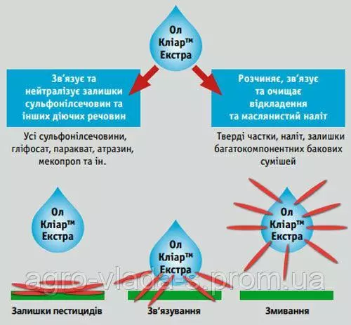 Ол Кліар Екстра ефективно нейтралізує залишки сульфонілсечовин, а також таких діючих речовин, як гліфосат, паракват, атразин, мекопроп та ін.