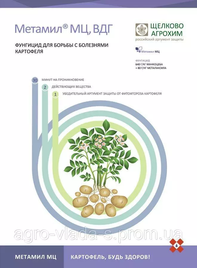 Фунгіцид контактно-системної дії, призначений для боротьби з хворобами картоплі.