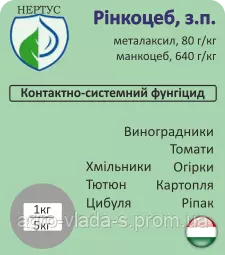 | Вміст діючої речовини | металаксил, 80 г/кг - манкоцеб, 640 г/кг |