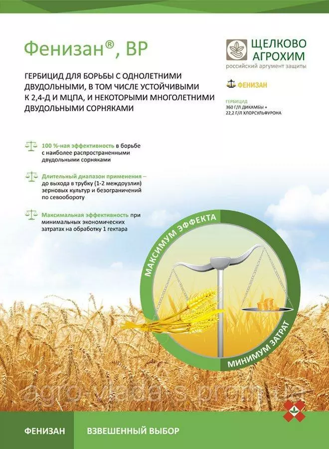 Післясходовий гербіцид для боротьби з однорічними дводольними, в тому числі стійкими до 2,4-Д і МЦПА, та деякими багаторічними дводольними бур'янами на посівах зернових культур (пшениці, ячменю, вівса, жита) і льону-довгунця.