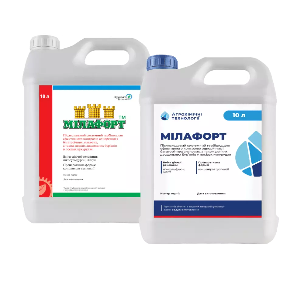 Мілафорт + Дисулам - застосування даної бакової суміші дозволяє за одне внесення знищити переважну більшість однорічних та багаторічних злакових і дводольних бур'бур'янів у посівах кукурудзи. Відбувається підсилення біологічної ефективності проти дводольних бур'бур'янів (лобода біла, вероніка персидська, зірочник середній, паслін чорний, берізка польова та ін.)