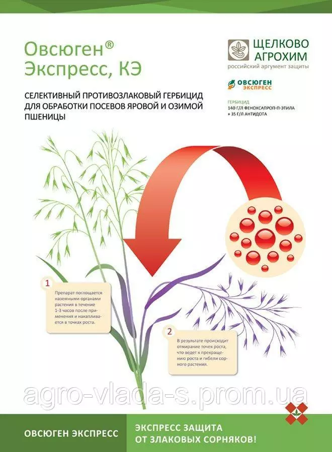 Селективний противозлаковый гербіцид системної дії, призначений для післясходової обробки посівів ярої та озимої пшениці проти однорічних злакових бур'янів.