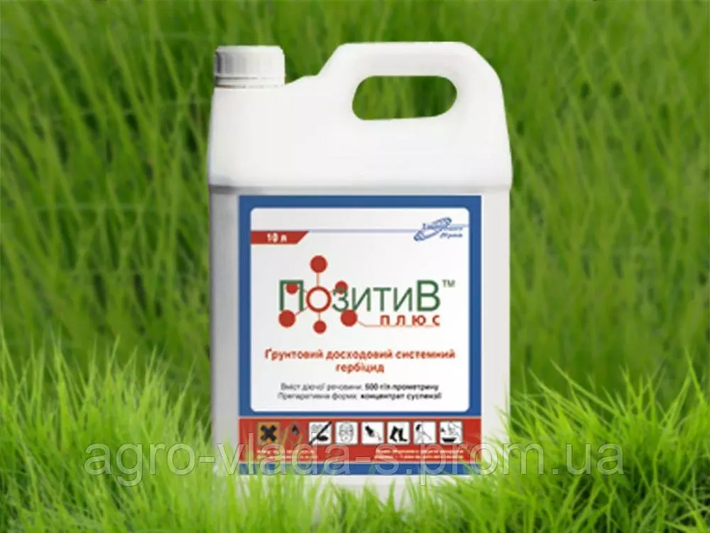 Прометрин блокує процес фотосинтезу у бур'янах. Препарат поглинається як проростками, так і корінням проростаючого бур'янів при застосуванні препарату до сходів. При внесенні Позитиву після сходів бур'янів, дія проявляється через листя. Фаза розвитку контрольованих рослин не повинна, перевищувати пари справжніх листків.