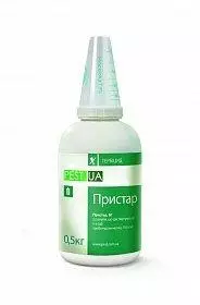 речовинами спочатку у бак обприскувача засипають Пристар, а потім