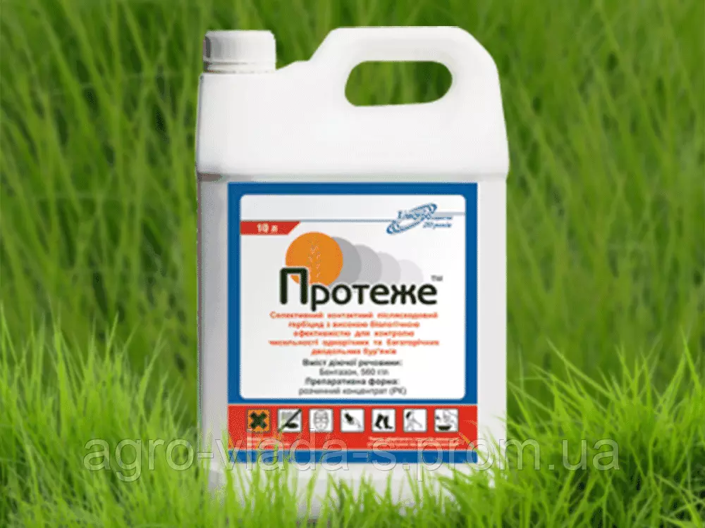 Протеже є контактним гербіцидом і поглинається переважно зеленими частинами рослин. Діюча речовина бентазон перериває реакцію фотосинтезу. Перші ознаки, які можна побачити візуально, з'являються вже через 3-7 днів, остаточна загибель відбувається приблизно через 14 днів.