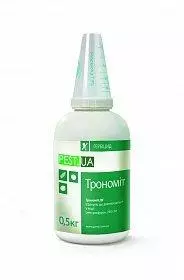Діюча речовина, поглинаючись листям, швидко рухається до коріння, після чого рослина перестає рости та у подальшому гине. За оптимальних умов і доз застосування Трономіт забезпечує надійний контроль над такими бур'янами: чутливі – вівсюг звичайний, гумай (насіння і ризоми), грицики звичайні, гірчиця польова, дворядник тонколистий, жовтець (види), зірочник середній, китник мишачехвостиковий, мак дикий, м’ята польова, мишій (види), пажитниця багатоквіткова, плоскуха звичайна, пальчатка кров’яна, пирій повзучий, підмаренник чіпкий, просо посівне, переліска однорічна, ромашка (види), редька дика, рутка лікарська, ріпиця зморшкувата, соняшник звичайний (фаза 2-4 листки), тимофіївка (види), щавель (види), щириця волосиста; помірно чутливі – амброзія полинолиста, гірчак вузлуватий, гірчак почечуйний, гірчак березкоподібний, осот рожевий, лобода біла, лобода гібридна; стійкі – берізка польова, паслін чорний, хвощ польовий, чистець болотний.
