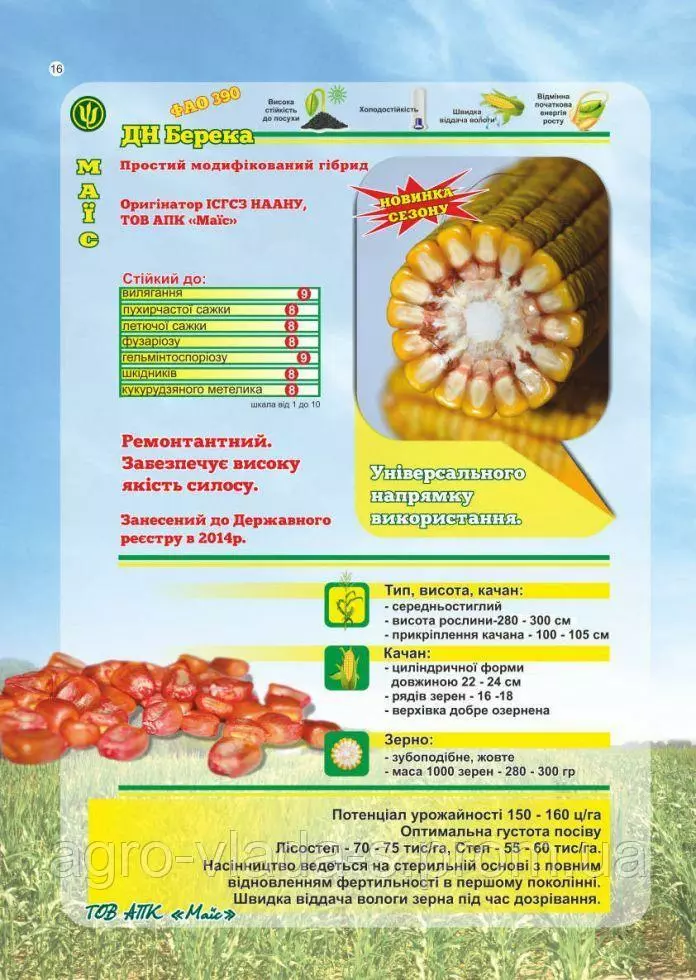 Гібрид насіння кукурудзи ДН БЕРЕКА