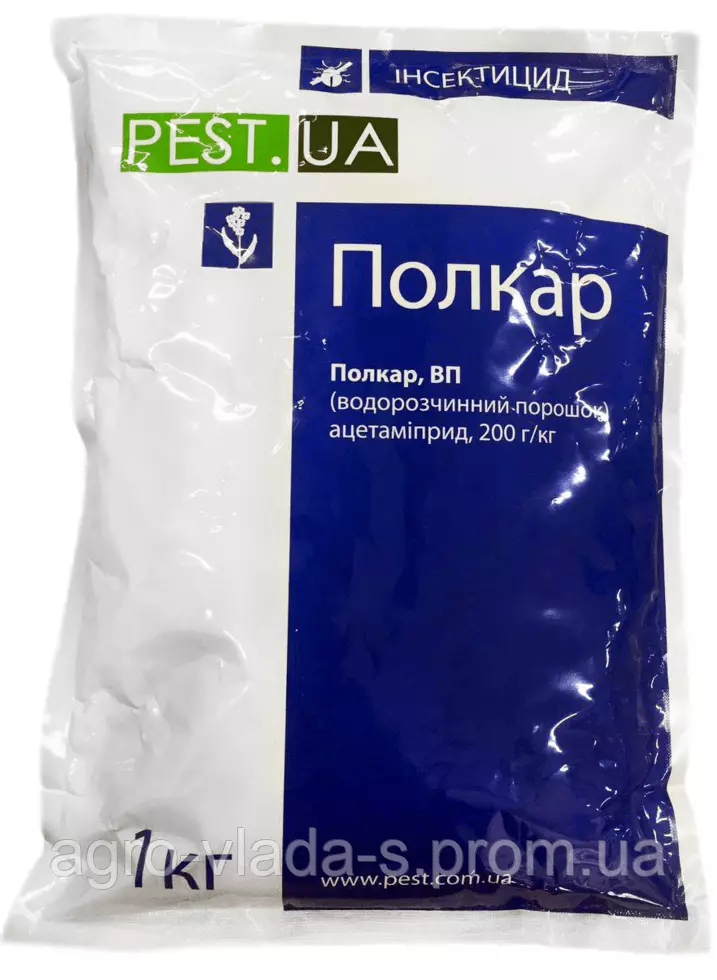 ВЛАСТИВОСТІ Полкар належить до нового класу інсектицидів – неонікотиноїдів. Має системну та контактно-кишкову дію. Ефективний проти комах-шкідників, що належать до рядів: напівтвердокрилі, трипси, твердокрилі та рівнокрилі. Тривалість захисної дії в оптимальних нормах витрати становить 14-21 день.