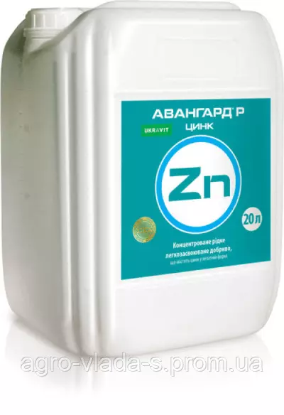 Особливості застосування: Об'єм робочого розчину на польових, овочевих культурах повинен становити 200-300 л/га. об'єм робочого розчину на кущі ягідників та наплодових деревах повинен становити 500-1000 л/га. З метою досягнення максимального ефекту від позакореневого підживлення добривомАВАНГАРД® Р Цинк, його рекомендується комбінувати в одному розчині з добривом АВАНГАРД®Р Кукурудза, АВАНГАРД® Р Зернові, АВАНГАРД® Р Буряк, АВАНГАРД® Р Ріпак, АВАНГАРД® Р Плодово-ягідний, АВАНГАРД® Р Соняшник, АВАНГАРД® Р Бобові АВАНГАРД® Р Овочеві, АВАНГАРД® Р Картопля.Передпосівна обробка насіння. 0,5-0,6 л добрива на 1 т насіння, рекомендується застосування разом із добривом АВАНГАРД® Р Старт,стимулятором росту ГУЛІВЕР® Стимул та протруйником.Загальна інформація. Цинк приймає участь у процесі фотосинтезі, у синтезі амінокислот, хлорофілу, органічних кислот, вітамінів, обміні вуглеводів, фосфору, сірки. Він спряє синтезу фітогормону ауксинів і потрібний культур для росту міжвузлів. Кукурудза, ріпак, хміль, бобові та плодові культури найбільш чутливі до нестачі цинку