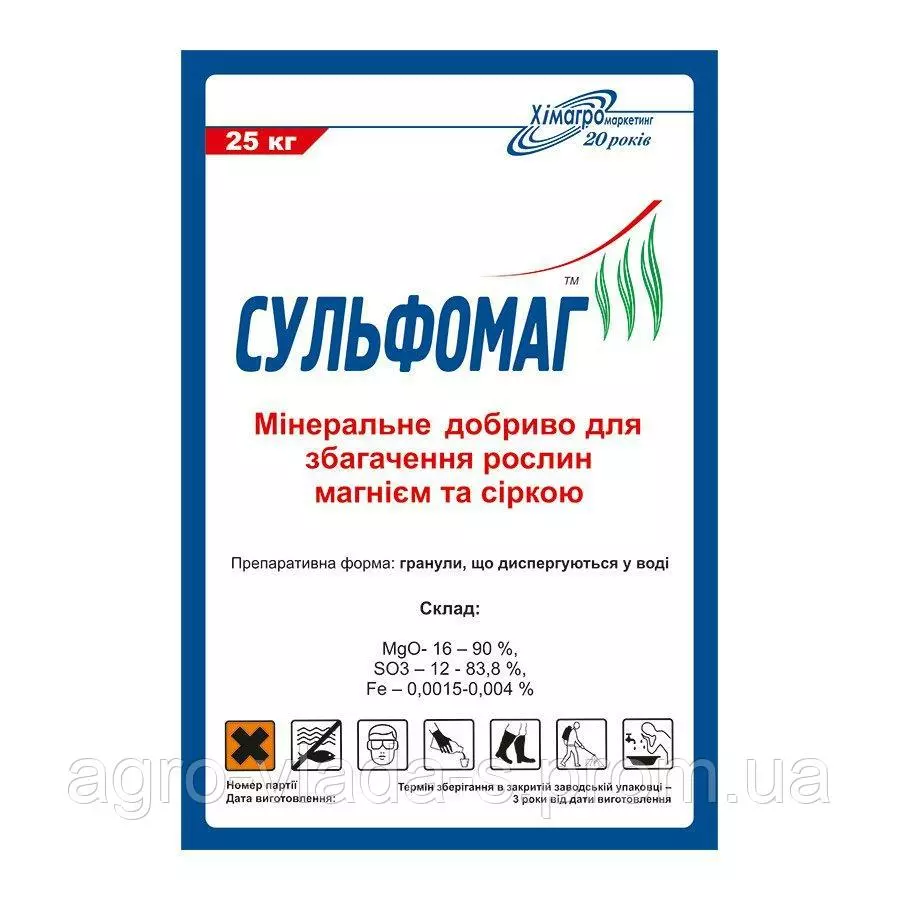 СульфоМаг це сильне і ефективне добриво, яке відноситься до магнієвих сірковмісних компонентів.