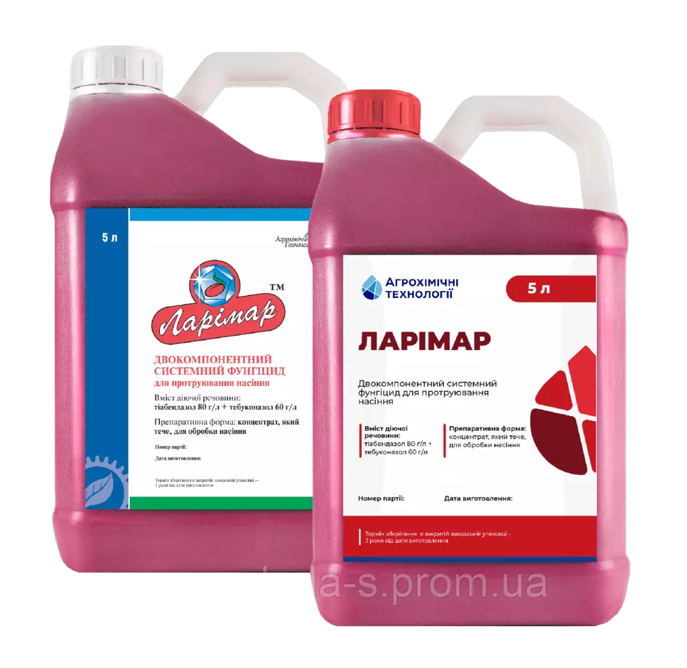 Ларімар 0.3 л/т + Триназон 1,0 л/т - забезпечує повний захист контрольованих патогенів - віді сажок та посилення ефективності проти гельмінтоспоріозної кореневої гнилі та інших гнилей. Ларімар 0,3-0,5 л/т + Канонір Ультра 0,3-1,0 л/т - фунгіцидний захист і контроль ґрунтових шкідників і шкідників сходів.