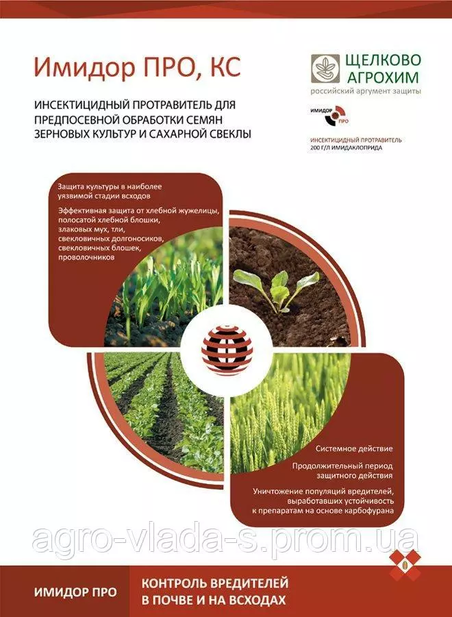 Інсектицидний протруйник системної дії для передпосівної обробки насіння зернових культур, цукрових буряків та інших культур у боротьбі з широким спектром шкідників сходів.