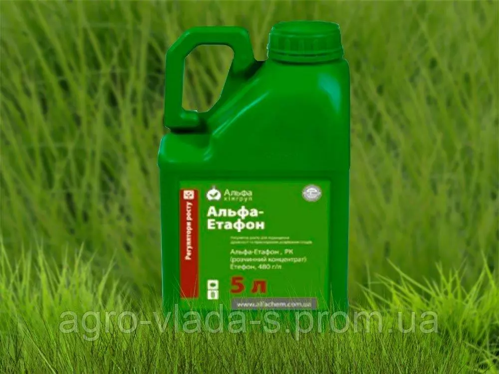 Альфа ― Етафон сприяє зменшенню зростання, укорочує і посилює пружність стебла, в результаті запобігає виляганню зернових, але це не впливає на величину колоса і форму зерна. Під впливом етафону в рослинах набувають товщі і ширші листкові пластинки з темно ― зеленим забарвленням.